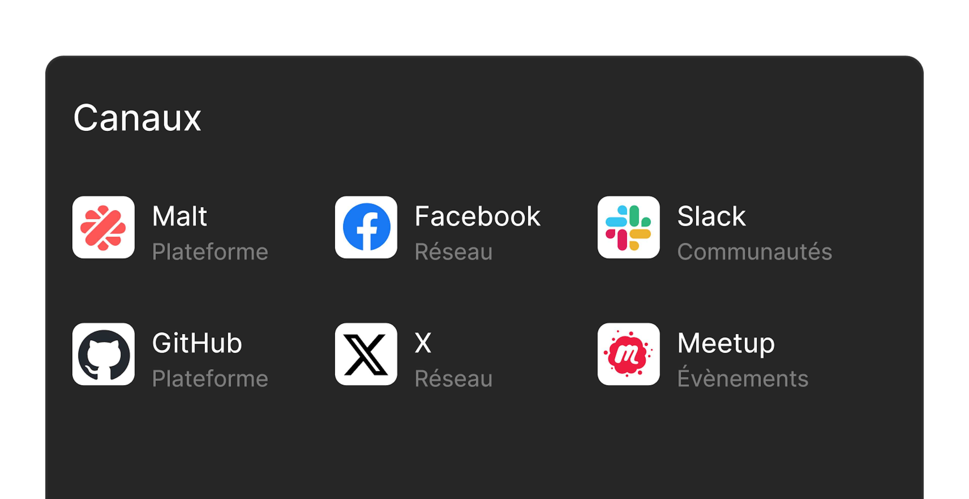 - Nouveaux leviers : Accédez à des talents via GitHub, Meetup, Slack, Alumnis, et bien d’autres plateformes spécialisées.