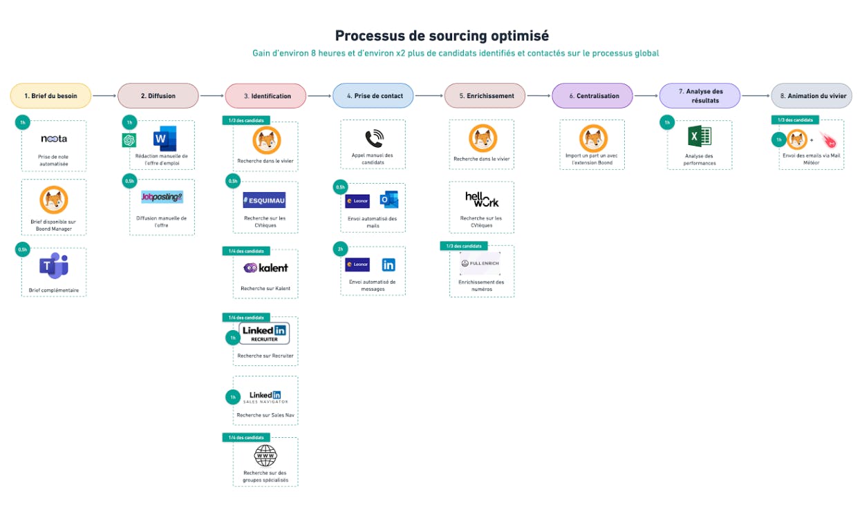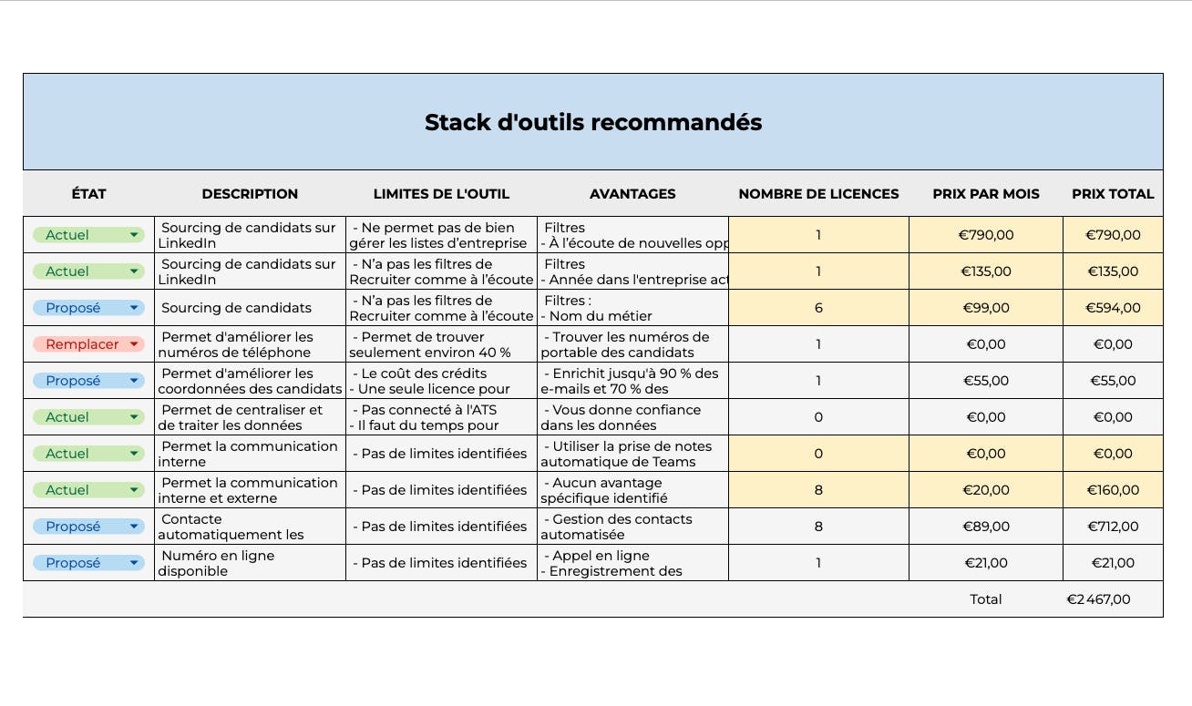 Nous auditons vos méthodes et partageons les recommandations pour accélérer vos recrutements grâce aux meilleurs outils, aux meilleures pratiques, au growth, à l'automatisation et à l’IA.