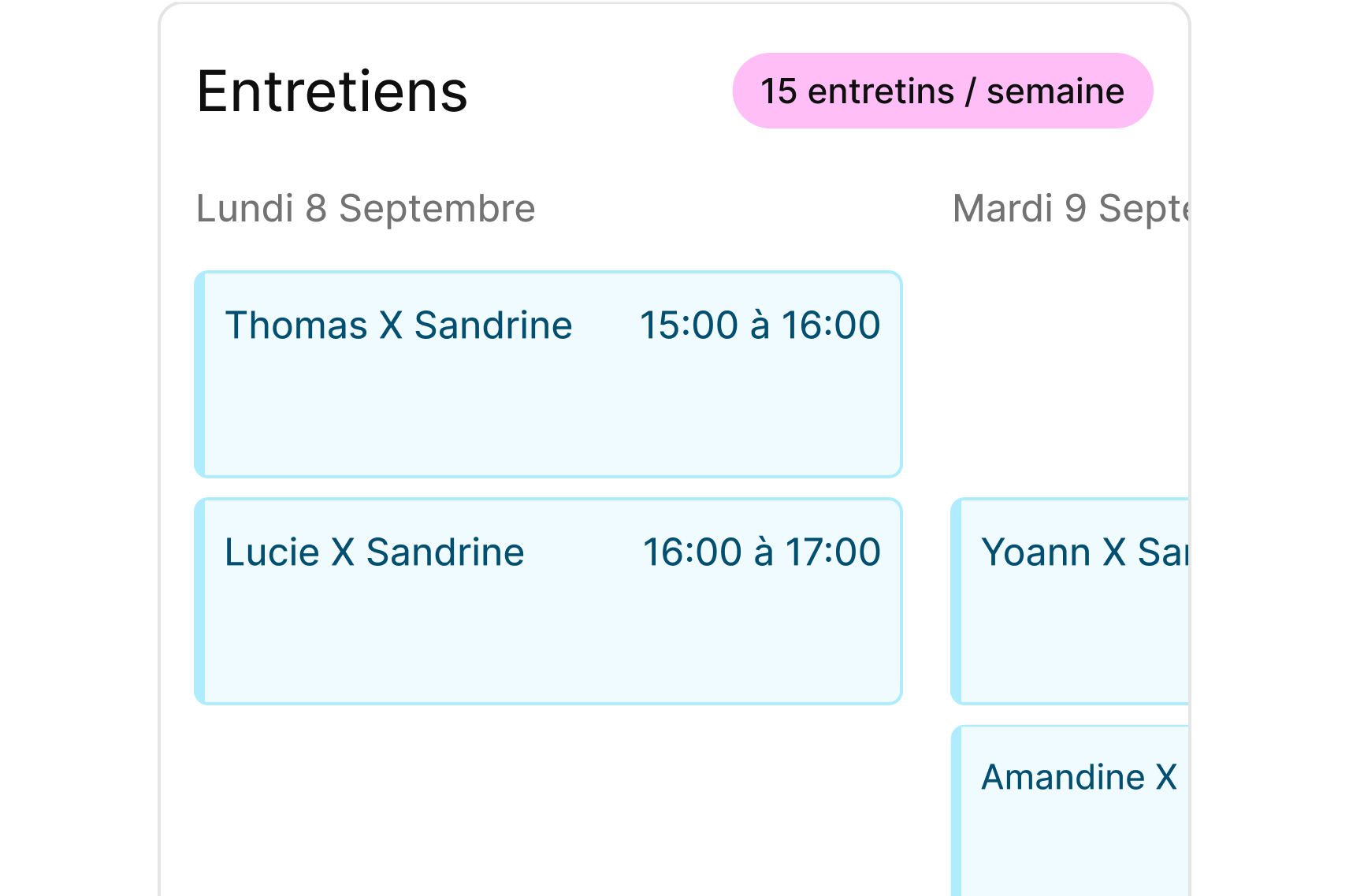 - Des entretiens qualifiés directement dans l’agenda de vos équipes