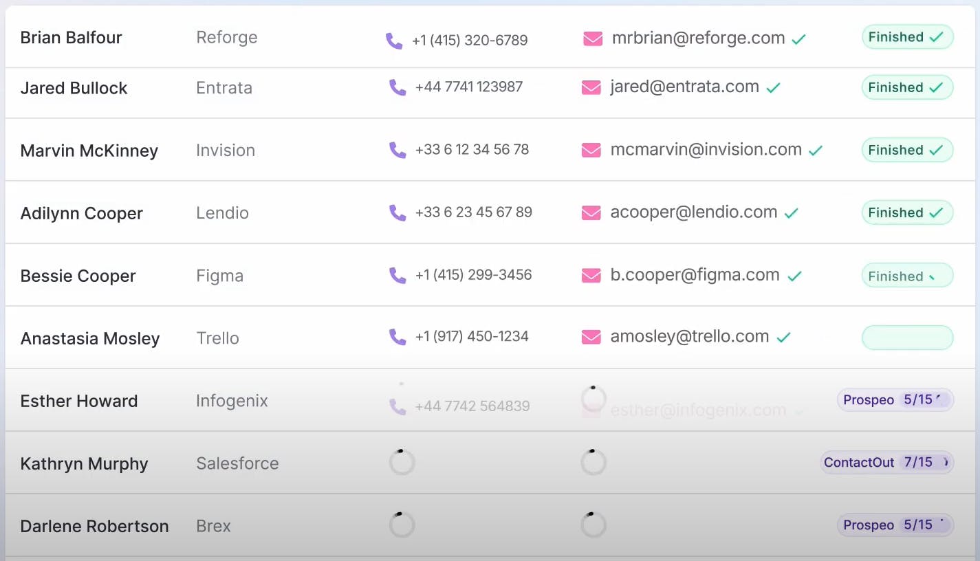 Pour améliorer l'efficacité des contacts, nous avons mis en place des outils d’enrichissement de données, permettant d’obtenir les coordonnées des prospects (emails et numéros de téléphone).